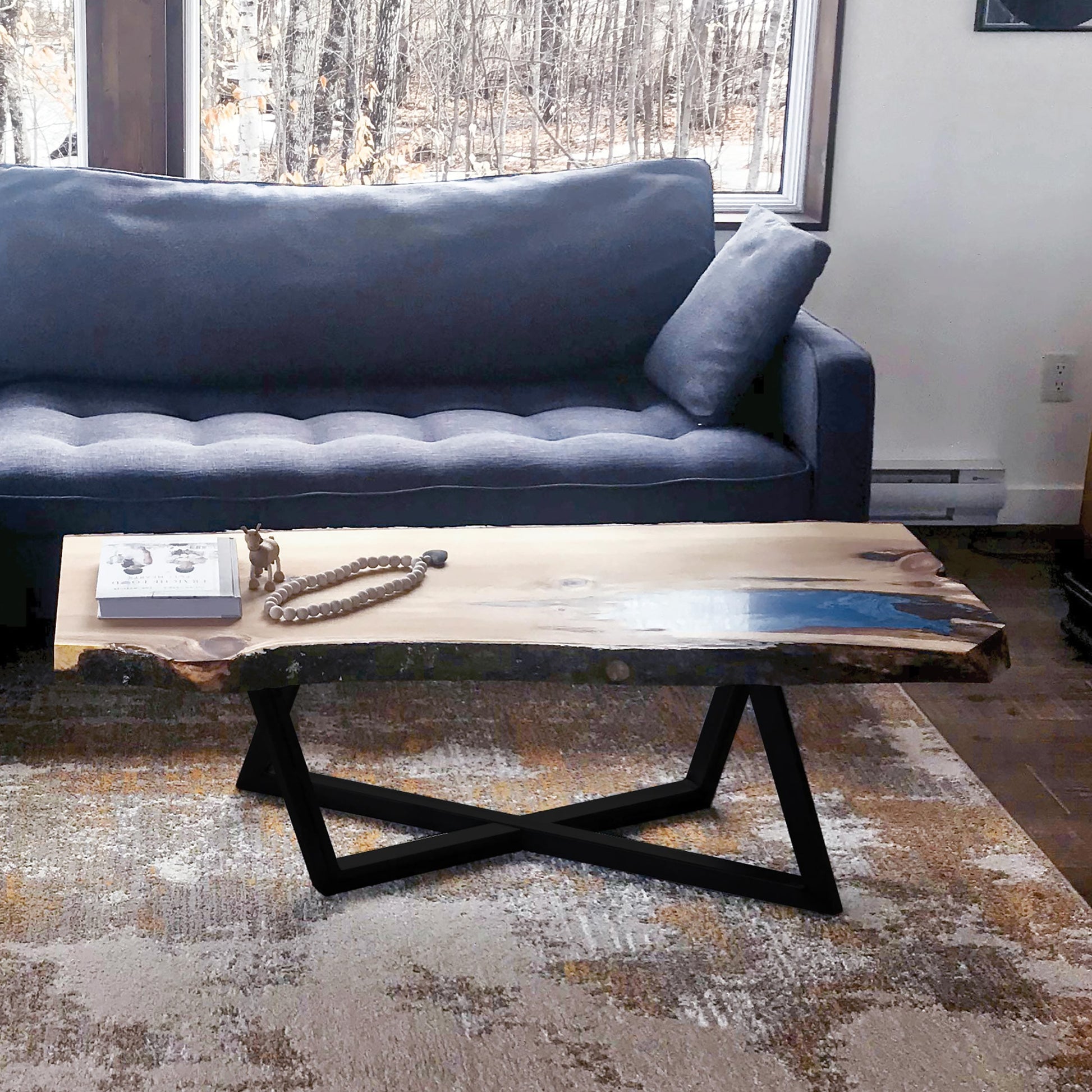 Give a modern look to your rustic wood slab with steel furniture legs from Live Edge Timber Co.®. From coffee tables and benches to dining tables and bars. Live Edge Timber has you covered. Each leg is manufactured using a single laser cut tube that is bent and then robot welded to provide the highest quality possible. These Rhombus Legs are intertwined legs that add character to any piece of furniture and room – perfect for a coffee table. They are 15-1/2 tall and 38 x 12-3/4. The tubing is 1-1/2 x 1-1/2. Packaged with 2-1/2-long mounting screws and instructions.